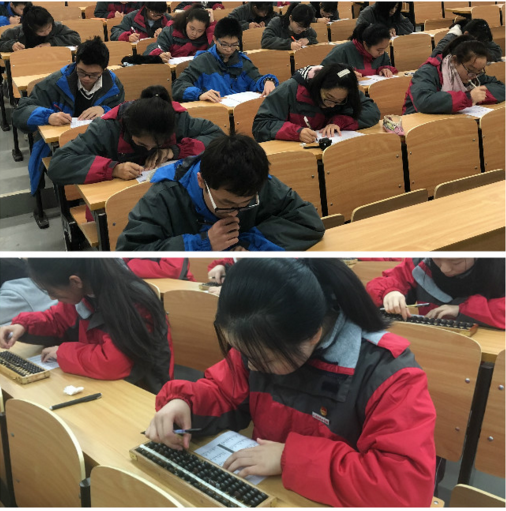 随着2015年11月份会计法的修订完成,将“从事会计工作的人员必须具备会计从业资格证”改为“从事会计工作的人员应具备专业能力、遵守职业道德”,标志着会计从业资格证正式退出历史舞台,企业招聘会计人员更看重学生的专业能力和职业道德。为进一步提高学生专业学习兴趣,活跃校园文化生活,提高学生综合职业能力,为学生搭建展示专业技能的平台,激发学生努力学习、提高技能的积极性,突出专业技能在职业教育中的位置,提升学校技能人才培养水平,会计教学部把本学期第15周作为专业技能比赛周,分别对15、16、17年级各在校班级学生开展了珠算、传票翻打、会计基础知识等项目的技能比赛。根据计划,比赛分别于12月13—15日中午,在崇文楼一楼阶梯教室和6楼的会计专业实训室分场地进行。