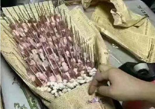 羊肉串花束,同样的还有蔬菜花束、玩偶花束等等,不过如果是人民币花束那就……
