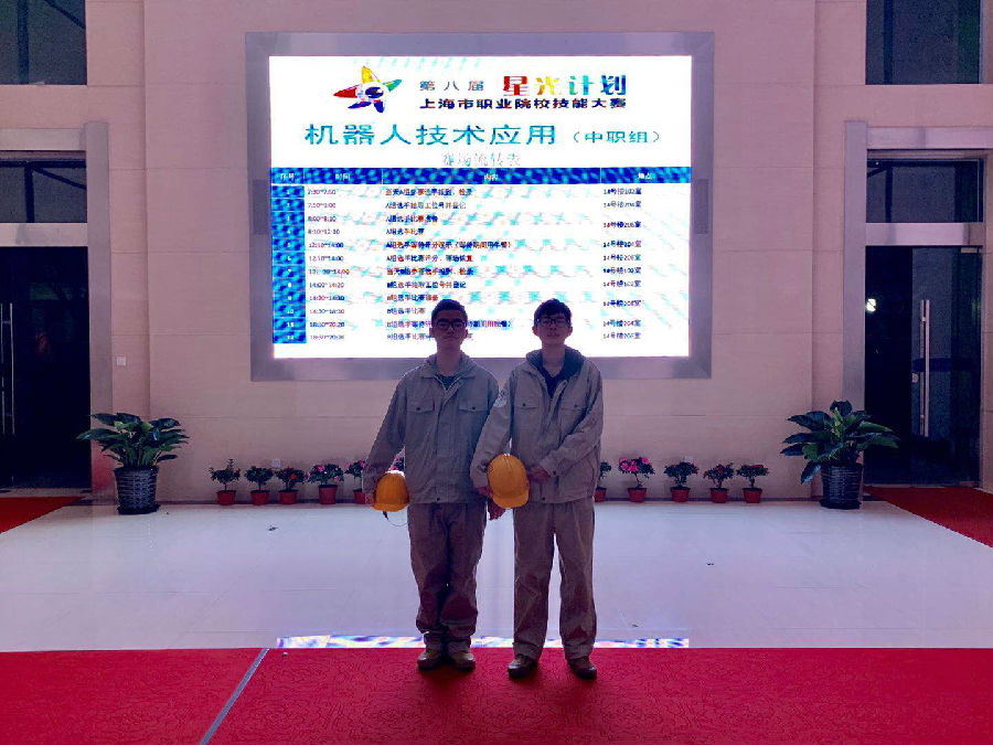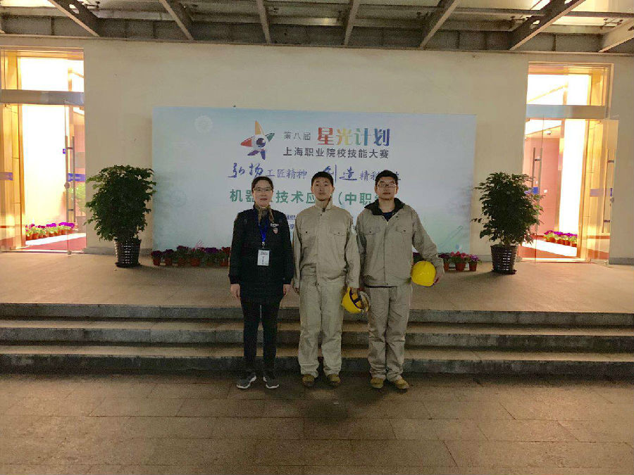 时间如白驹过隙,备战“星光”5个月之后,决赛如约而至。本次机器人项目的决赛分为两天,3月29日与3月30日位于上海工商信息学校进行,我校2位指定选手与2位抽签选手分别于12点15分从学校出发参加下午场14:30——18:30的决赛,大家身着工作服,伴着指导老师沈瑛欢和队友的期待,带着坚定的信念踏上了属于他们的“战场”。