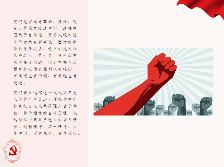 中国共产党的奋斗历程悠长深远,1840年的鸦片战争,1911年的辛亥革命,在陈独秀、李大钊、孙中山和邓小平众伟人的领导下中国从半封建半殖民地慢慢走向发展之路。