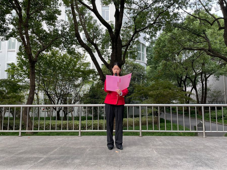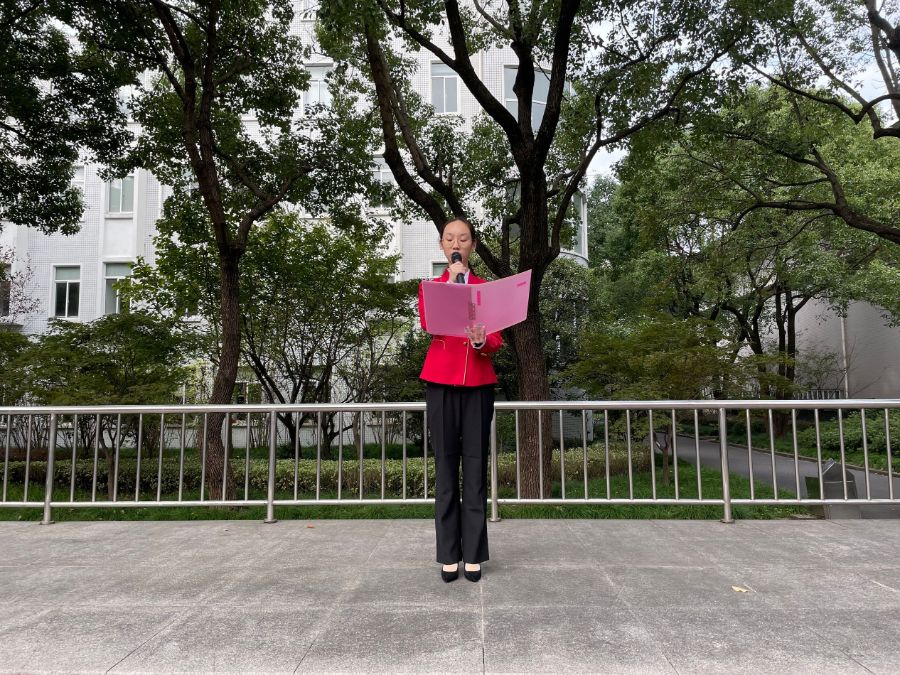 本次升旗仪式由20级金融中高贯通班的周晶晶主持,由20级国际商务中高贯通班的吴静怡发表了她的看法。