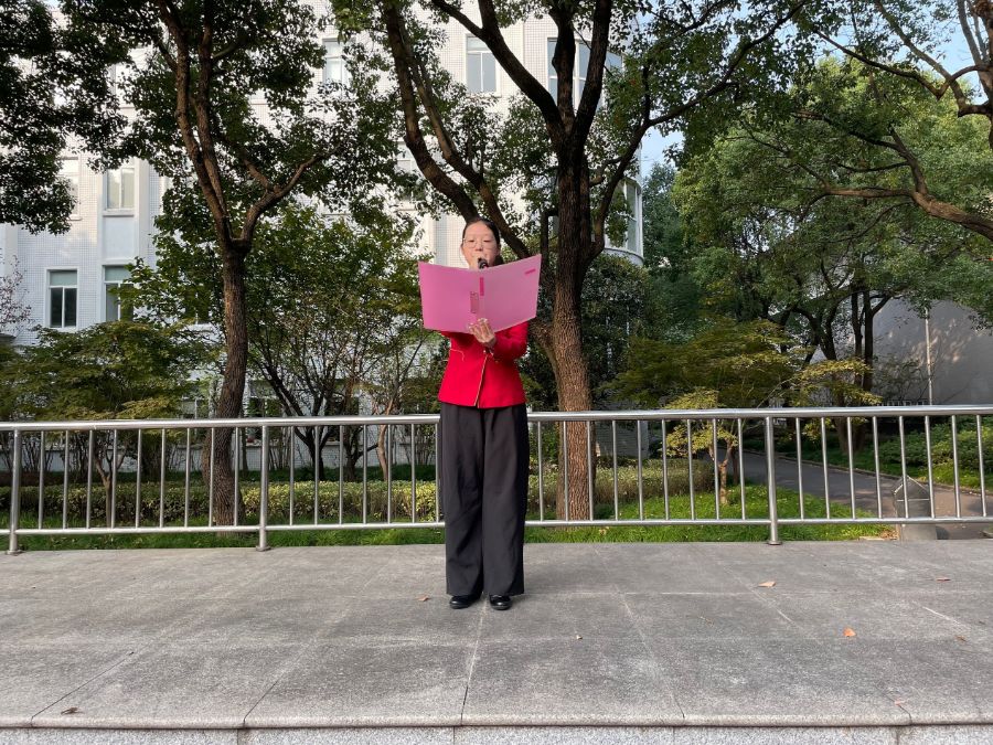 她介绍道本次校园文化艺术节将于11月至12月期间开展,设有主持人.大赛、“红色信仰,薪火相传”朗诵专场以及才艺表演专场。才艺表演专场内,包括舞蹈、唱歌、器乐三个赛项,内容形式不限。希望同学们能找到适合自己的舞台,发光发热。各专场比赛中获奖同学有机会推荐参加全国、市、区级比赛。获奖作品也会进行全校展示。对本届文化节活动中取得突出成绩的班级,将授予优.秀组织奖。