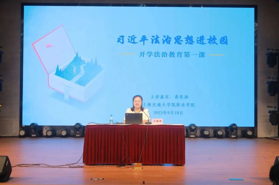 党的二十大报告提出:“坚持全面依法治国,推进法治中国建设,在法治轨道上全面建设社会主义现代化国家”的战略命题。当代中职生生逢其时,作为见证者、参与者、受益者,亲历国家社会的飞速发展。同时,他们正处于世界观、人生观和价值观形成的关键时期,学校致力学生养成“遇事找法,解决问题靠法”的法治意识,定期举行法律讲座。2023年9月18日,上海交通大学凯原法学院龚思涵博士走进商贸旅游学校,为同学们带来一堂生动的“以案说法”的法治大课。