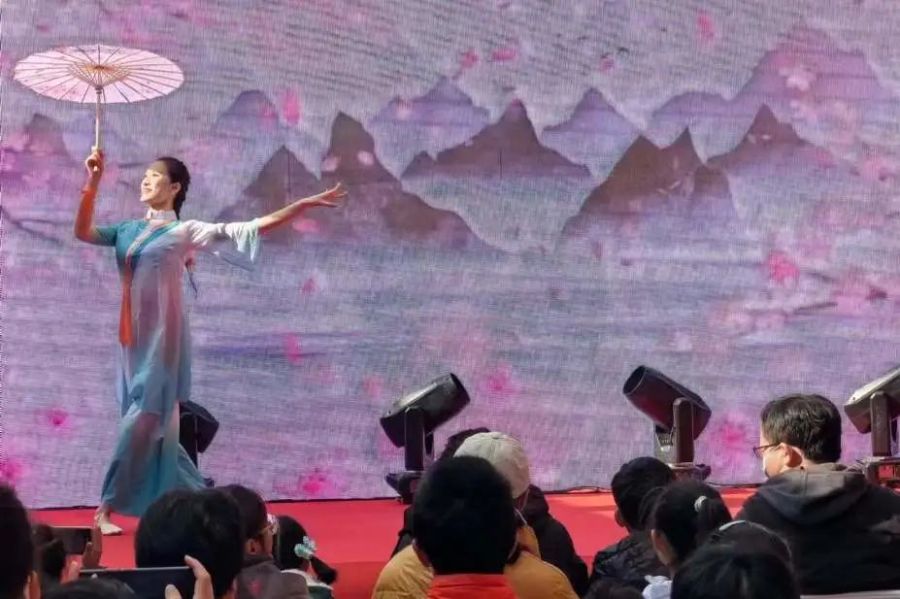 在观众的掌声簇拥下,第一个上台表演的是我校21航服李乐祺带来的古典舞独舞《烟雨行舟》。“烟雨入江南,山水如墨染,宛若丹青未干,提笔然点欲穿······”初冬暖阳,一片柔和,一个身着青绿纱衣的少女,撑着淡黄的油纸伞,翩翩起舞,一颦一笑,如仙女,似蝴蝶,犹碧玉。