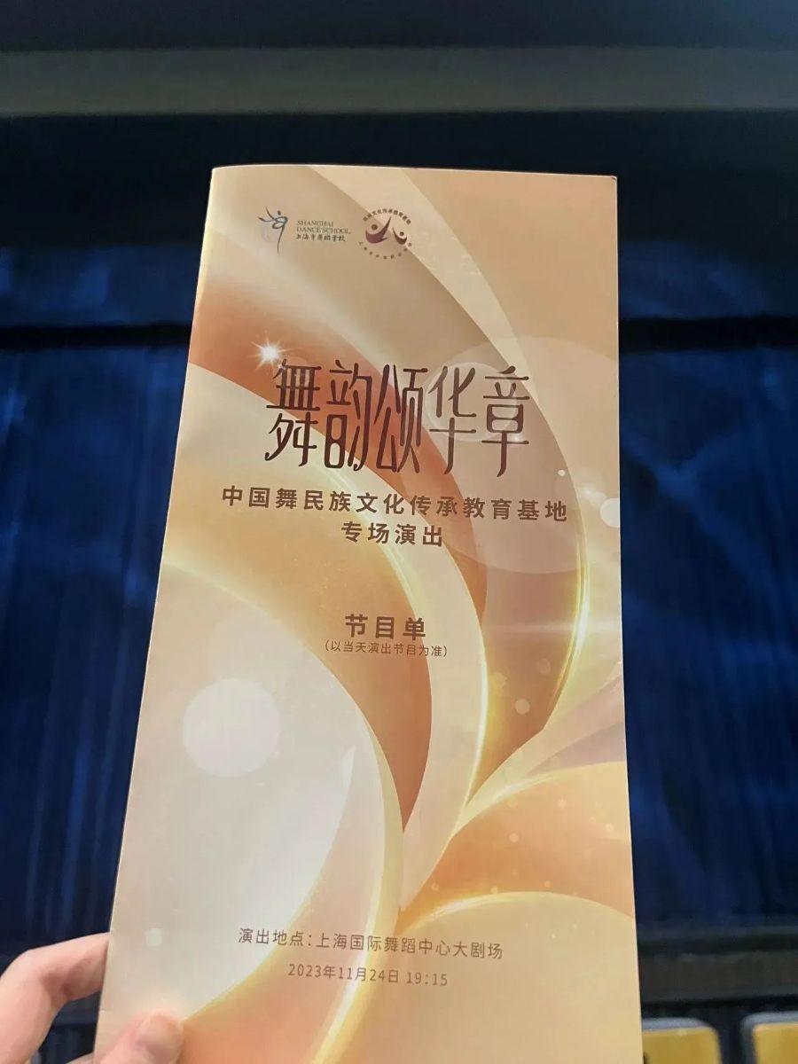 2023年11月24日,我校“飞儿舞蹈艺术团”在周婷老师的带领下来到了上海国际舞蹈中心观摩“舞韵颂华章——民族舞蹈文化传承教育基地”舞蹈演出。本次演出他们欣赏到了上海市舞蹈学校带来的多支优秀的舞蹈作品,如《侠骨伞影》、《心尖尖》、《大河印象》等,舞台上舞者们以扎实的舞技,灿烂的笑容深深感染了在座的每一位同学。本次观摩演出不仅开拓了大家的视野,也让同学们感受到了中国传统民族舞蹈带来的无穷魅力。