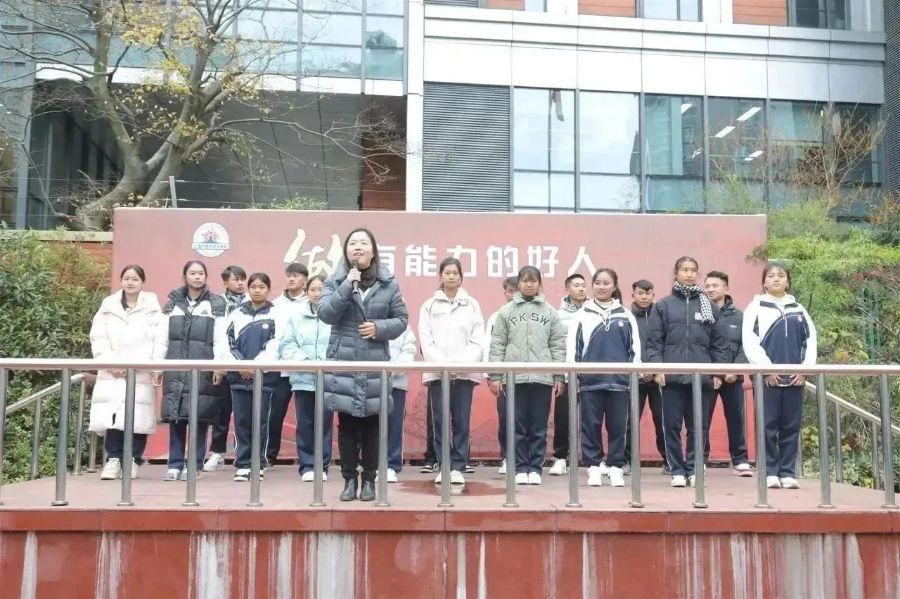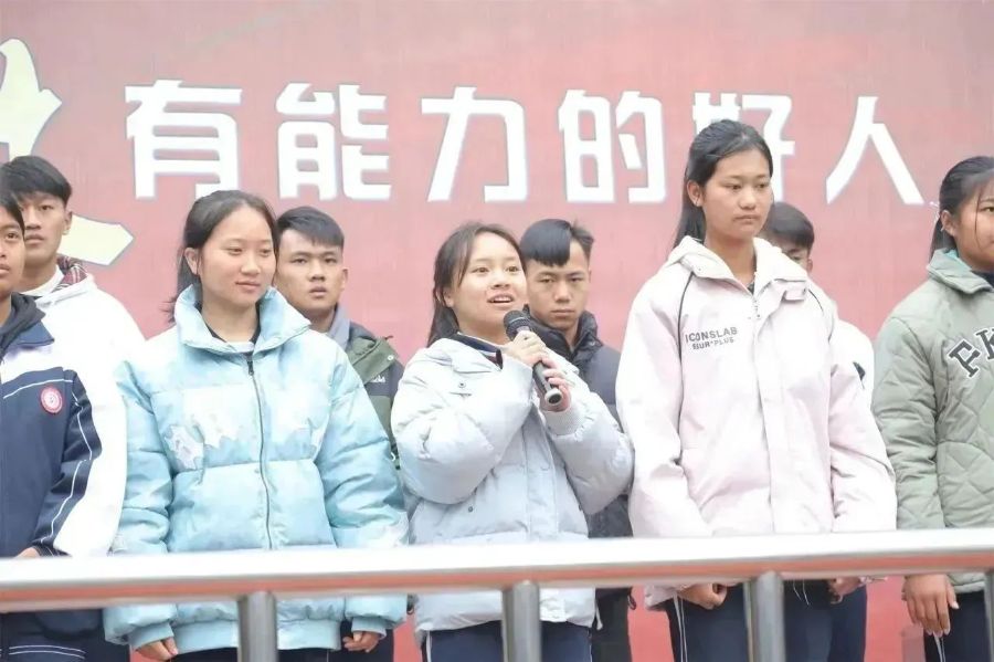 13日清晨的升旗仪式上,18位澜沧县职业高级中学的同学在全体师生热情的掌声中登台亮相,并向大家做了自我介绍。22级旅管3班的沈思雨代表全体同学向来自远方的新同学们表示热烈的欢迎,表达了相互学习、携手共进的美好愿望。