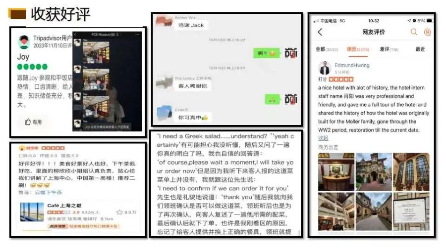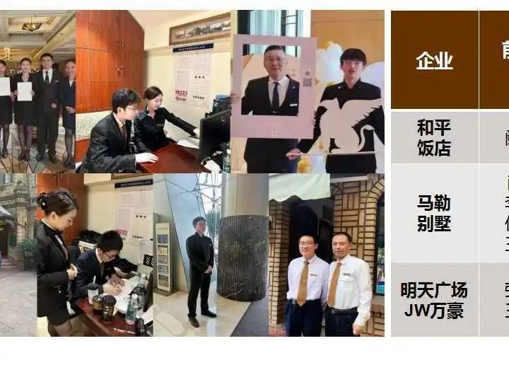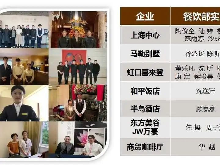 本学期开学初21酒店管理专业的29名同学分别进入了半岛酒店、和平饭店、马勒别墅、上海中心、万豪等8家企业进行为期十周的岗位实践,分别接触了前厅部、餐饮部、客房部等部门的工作。为了更好地总结经验,分享收获,2023年12月27日,21级酒店管理专业的学生在浦东校区阶梯教室举行了岗位实践展示交流活动,下面让我们看看他们的收获与成长吧!