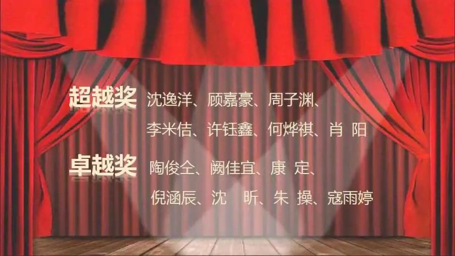通过综合评定,沈逸洋、顾嘉豪、周子渊、李米佶、许钰鑫、何烨祺、肖阳七名同学荣获“超越奖”;陶俊仝、阙佳宜、康定、倪涵辰、沈昕、朱操、寇雨婷七名同学荣获“卓越奖”。