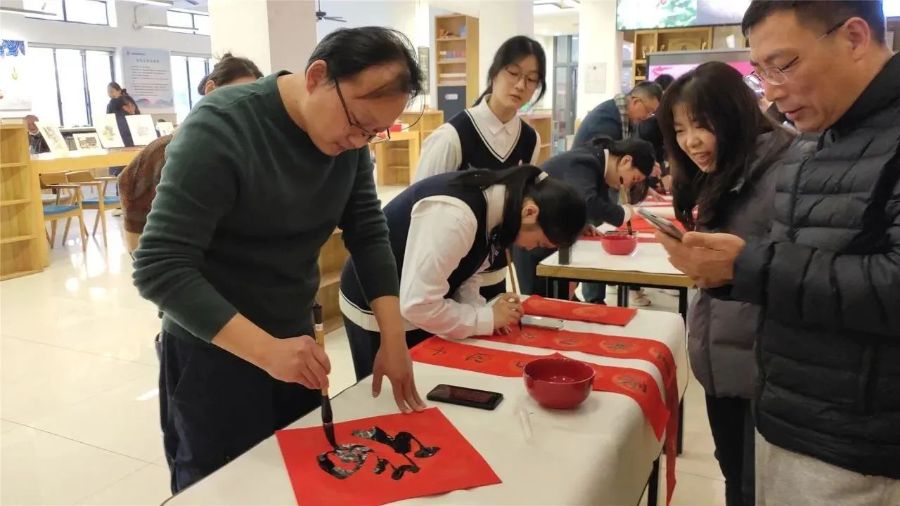 龙行龘龘迎春纳福——上海市商贸旅游学校举办写春联送福字活动