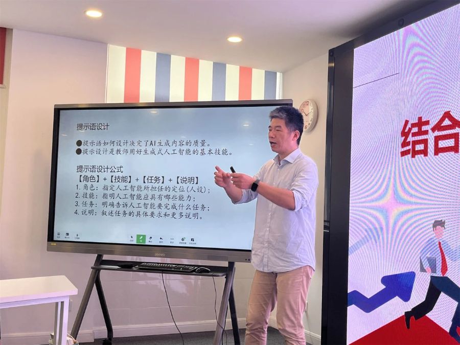 王老师着重指出,老师们在使用 AI 工具时应充分结合学生自身的特点,为学生提供具体化、个性化的适合方案,只有以学生为中心,才能让人工智能更好地服务于教学,助力学生的成长与发展。王老师指导学员们进行了现场实操。在实际操作中,学员们亲身感受到了 AI 带来的教学帮助,大家纷纷表示,将在今后的教学工作中积极运用这些新技术。