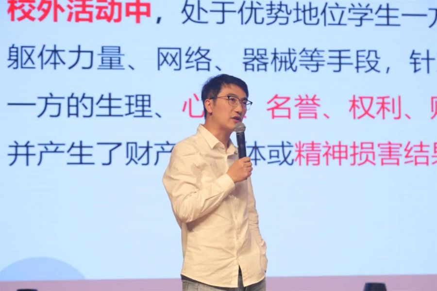 雷槟硕老师用通俗易懂的语言,向老师们介绍了学生欺凌的定义,以及涵盖肢体攻击、言语、社交和网络等多个层面欺凌行为,使大家对学生欺凌有了更准确、清晰的认识。通过生动的案例,雷老师从个体对关注的需求、家庭背景、社会环境等因素,分析了学生欺凌产生的成因,欺凌行为对受害者身心造成的影响,引导老师们认识到学生欺凌的严重性。学生欺凌不仅限于校内,也可能发生在上下学途中或虚拟空间,由于欺凌行为的多样性和隐蔽性,他呼吁,教师们要关注可能被忽视的欺凌迹象。