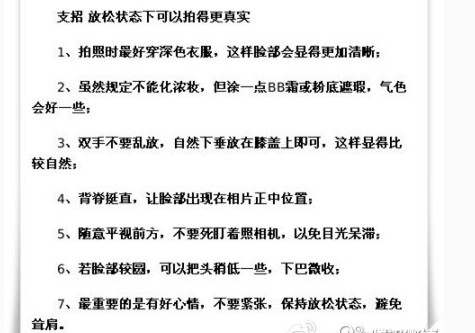 ⑥头稍低一些,下巴微收⑦别紧张,保持放松状态,避免耸肩。