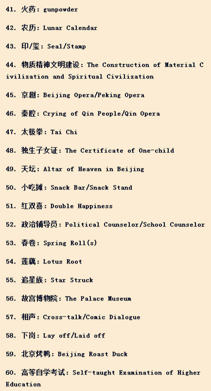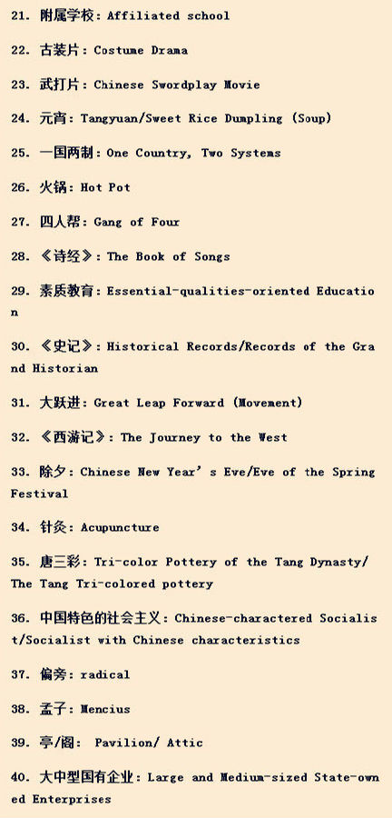 下面就给大家罗列一些介绍中国文化的专门词汇:
