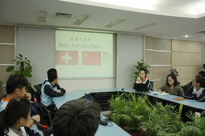 接着是同样在瑞士交流的卢一斐同学讲述她的经历。虽然与孙慧敏同学同在瑞士交流,但由于所处城市、家庭、学校的不同,卢一斐同学的感触和收获也不尽相同。她讲述了所住城市的特有风俗和节日、所在学校低调的校园文化、住家完整快乐的大家庭以及增长见识的欧洲旅游。她说,通过一年的交流锻炼,不仅学到了一门新的外语、增长了见识,还锻炼出自己的独立性,受益匪浅。