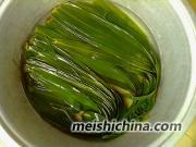 1、把粽叶用开水烫下,用剪子把头剪齐它。