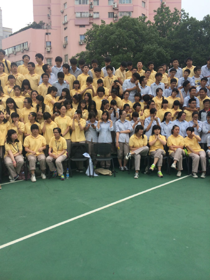 2014年6月24日周二下午,原本寂静的操场因为1250名小黄人的出现而雀跃。学生处组织12级全体师生(南北校区共34个班级1250名学生)统一着装在南校区操场拍摄2015届毕业合照,校长乔刚、党委书记乔蔓菁、副校长陈强、副校长王贞、纪委书记冯梅以及学生处、教务处、教学部的领导一同拍下了最美的瞬间。