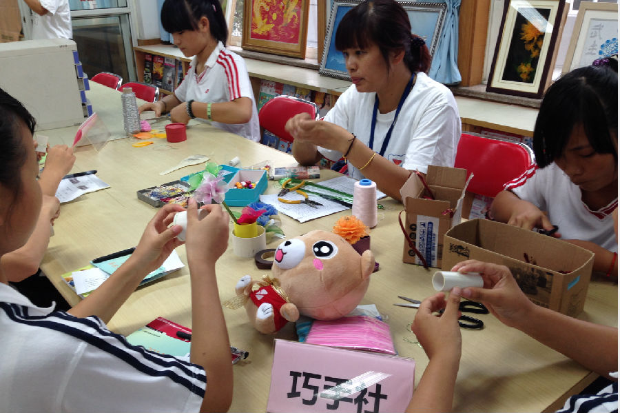 如图,社团成员和小伙伴们一起动手做,体验丝网花和粉雕的乐趣,还有社团成员的作品展示哦!
